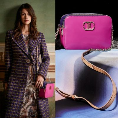 Alviero Martini 義大利地圖包 輕奢質感 雙拉鍊撞色牛皮相機包-桃紅色 春節 情人節$6,99988折