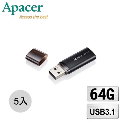 Apacer 宇瞻 AH25A 64GB 流線飛梭碟 USB 3.1 隨身碟(五入特惠組)$1,195