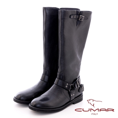 【bac】西部牛仔靴皮帶釦騎士中筒短靴-黑色$1,74389折
