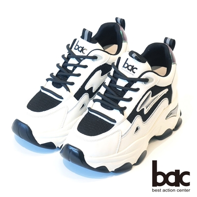 【bac】懶人彈力鞋帶厚底鑽飾休閒鞋-白