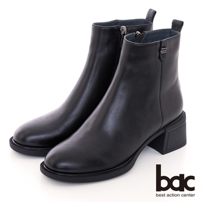【bac】極簡約素面粗跟短靴-黑色$2,44483折