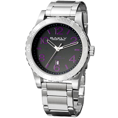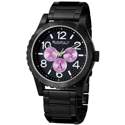 BAKLY 撼動系列軍武最前線日期腕錶-黑x紫時標/44mm