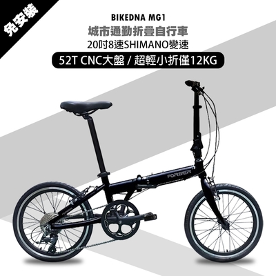 BIKEDNA MG1 20吋52T CNC大盤 8速SHIMANO城市通勤折疊自行車便捷換檔超輕小折僅12 KG免安裝 外貿出口款$7,22585折