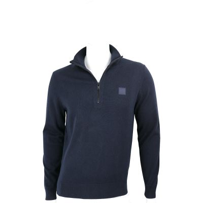 BOSS 矽膠LOGO深藍色拉鍊高領羊絨混紡針織衫 上衣(男款)