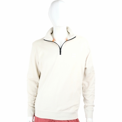 BOSS 矽膠LOGO刺繡補丁米白色半拉鍊開領運動衫 上衣(男款)