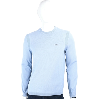 BOSS Ever-X 矽膠LOGO後領洞洞水藍色長袖棉質針織衫 上衣(男款)
