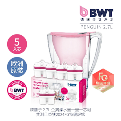 BWT德國倍世 2.7L企鵝濾水壺 1壺5芯組(白色)