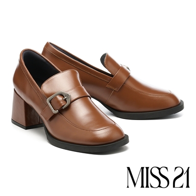 低跟鞋 BYHUE 簡約拼接感方釦漆皮軟芯微Q底方頭低跟鞋-灰綠