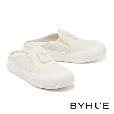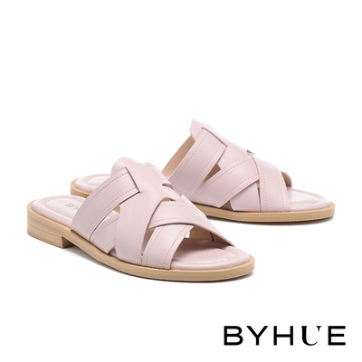 穆勒鞋 BYHUE 簡約質感純色編織羊皮軟芯低跟穆勒拖鞋-米白