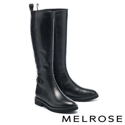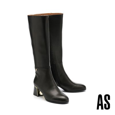 短靴 BYHUE 優雅韓系兩穿珍珠鍊條彈力皮革方頭高跟短靴-黑