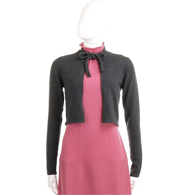 Camilla Clodel 灰色綁帶蝴蝶結短版外套(100%CASHMERE)