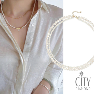 【City Diamond 引雅】網路獨家 母貝米粒珠雙層疊戴造型項鍊-多款任選(職人工藝系列)