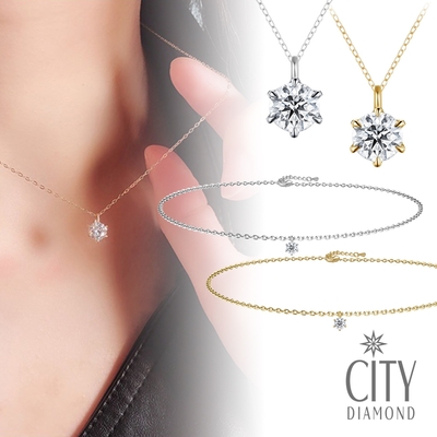 【City Diamond 引雅】網路獨家 18K日本鉑金天然鑽石7-8分黃K金墜子 項鍊款 手鍊款-多款雙色任選(東京Yuki系列)
