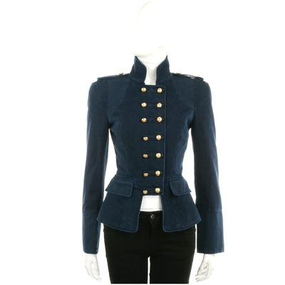 CLASS roberto cavalli 黃銅排釦墊肩復古藍軍裝外套(42號)