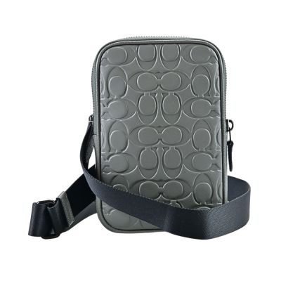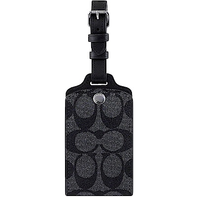 COACH卡其C Logo PVC黑邊皮飾方型斜背男包