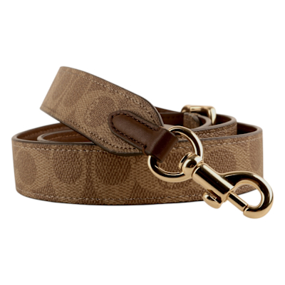 COACH CITY系列杏棕色C Logo PVC黑邊肩背/斜背兩用水桶包