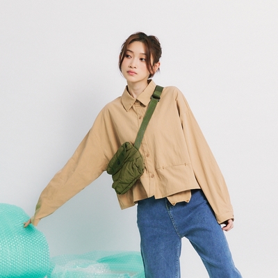 【Dailo】貓咪探頭率性造型短版長袖襯衫 綠 杏 紫