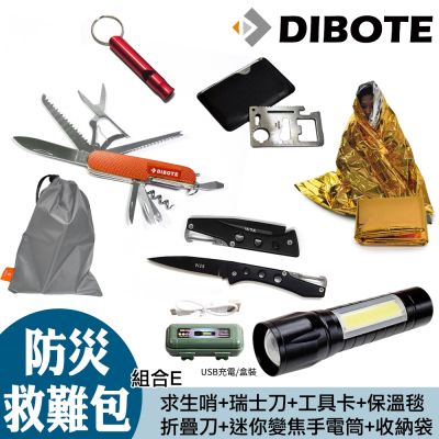 迪伯特DIBOTE【防災救難包-F】戶外居家防災包救難包地震包避難 緊急求生(求生哨子.保溫毯.工具卡.COB扣燈.收納袋)$449
