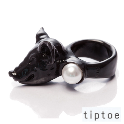 tiptoe by e.m. 逼真小豬頭 壓克力珍珠戒指 (Black)
