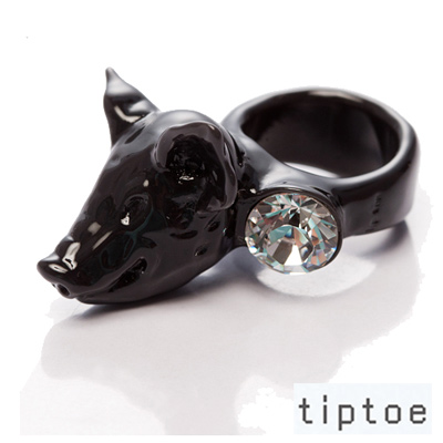 tiptoe by e.m. 逼真小豬頭 壓克力水晶戒指(Black)