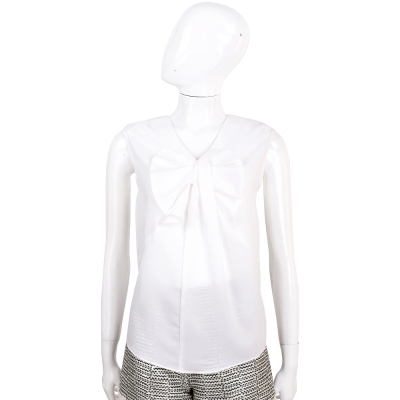 EDWARD ACHOUR PARIS 白色抓褶蝴蝶結飾無袖上衣