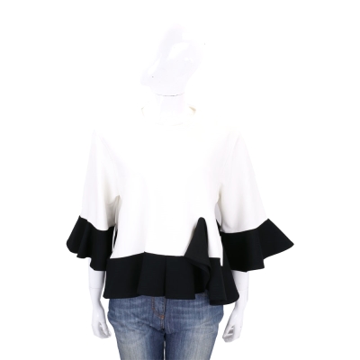 EDWARD ACHOUR PARIS 白黑色拼接荷葉剪裁七分袖上衣(展示品)