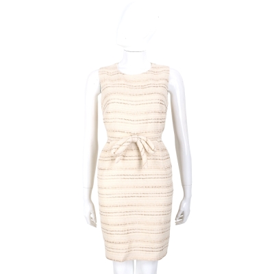 EDWARD ACHOUR PARIS 米色條紋蝴蝶結飾無袖洋裝