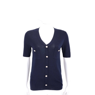 EDWARD ACHOUR PARIS 珍珠釦深藍色短袖針織外套