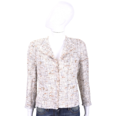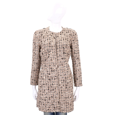 EDWARD ACHOUR PARIS 珍珠花釦米棕色短版毛呢外套