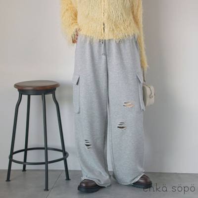 【ehka sopo】運動風刷破造型抽繩綁帶工裝褲$851