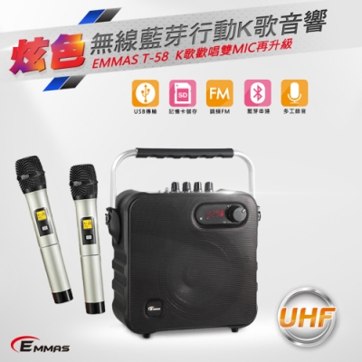 EMMAS 無線雙麥克風藍芽行動K歌音響T-58