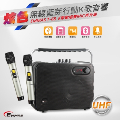 EMMAS 無線雙麥克風藍芽行動K歌音響T-68