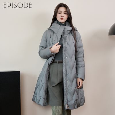 EPISODE - 保暖拉鏈連帽中長款羽絨外套E54C02(灰)$6,900