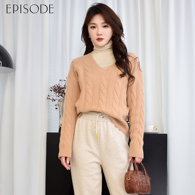 EPISODE - 舒適保暖羊毛麻花V領毛衣135519(駝)$1,990