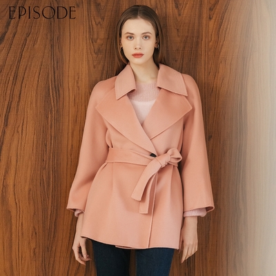 EPISODE - 優雅大翻領插肩綁帶羊毛大衣外套E35C02(粉)$3,295$3,744