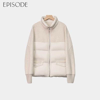 EPISODE - 百搭保暖立領羊毛拼接羽絨短外套(米)E44C24$4,867$5,530