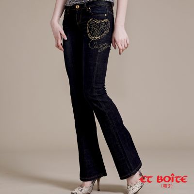 ET BOîTE 箱子 BLUE WAY – 心型袋花合身低腰丹寧靴型褲$590