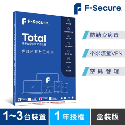 F-Secure TOTAL 跨平台全方位安全軟體 1-3台裝置1年授權$490