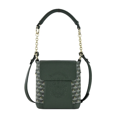 Faure Le Page Boho 15 經典龍鱗紋翻蓋拼接兩用包-小/綠