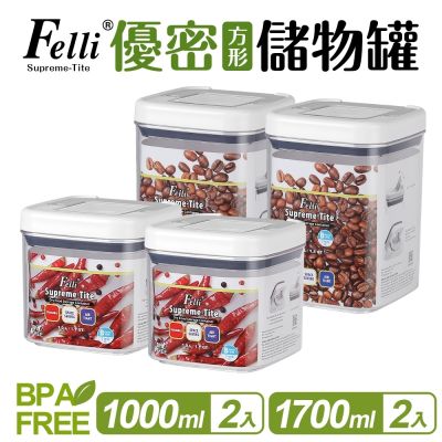 【Felli 飛綠】優密方形儲物罐4件組(1Lx2+1.7Lx2)$1,190