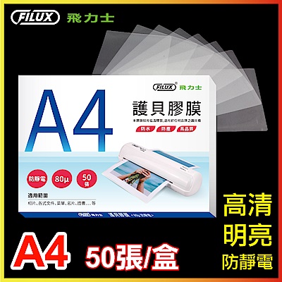 【優選特惠組】FILUX 飛力士 高清明亮防靜電A4護貝膠膜 (50張/盒X2,共100張)