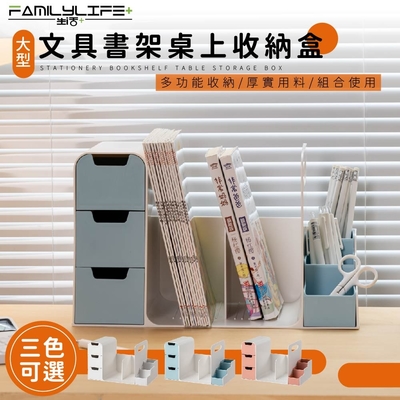 【FL 生活+】大型文具書架桌上收納盒(三色任選/階梯式筆筒/防塵/抽屜/文具/文件/妝品/書籍/小物收納/A-168)
