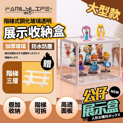 【FL 生活+】大型款-階梯式鋼化玻璃透明展示收納盒(模型/公仔/展示盒/收藏盒/置物盒/A-097)