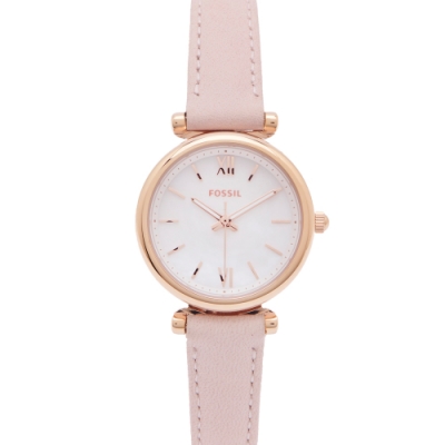 FOSSIL 永恆經典GEORGIA系列皮革手錶(ES3745)-玫瑰金框x淺咖/26mm