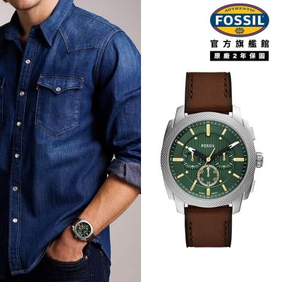FOSSIL 復古簡約風帆布與皮革材質錶帶手錶(FS5918)-銀面x綠色系/40mm