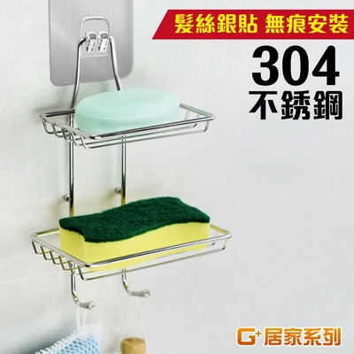 G+居家 2組 304不鏽鋼髮絲銀無痕貼雙層肥皂架(304不鏽鋼無痕掛勾 無痕貼 廚房浴室收納 菜瓜布瀝水架 香皂肥皂盤 香皂肥皂盒)$610