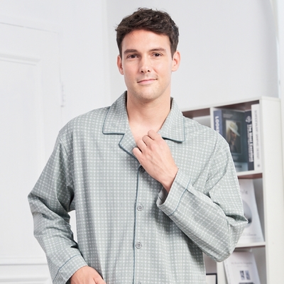 GOLDDEER金鹿 - 嫘縈棉混高質感薄款國民領長袖衣褲套裝男睡衣【M3440】