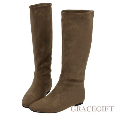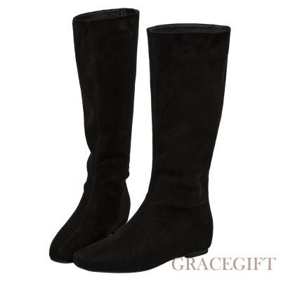 【Grace Gift】韓系素面中跟長靴 黑