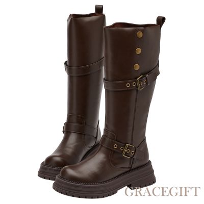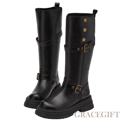 【Grace Gift】帥氣女團輕量厚底瘦瘦長靴 黑