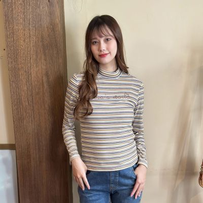 Hana-Mokuba花木馬日系女裝開叉下襬長版連帽條紋針織_咖條/灰條$1,580
